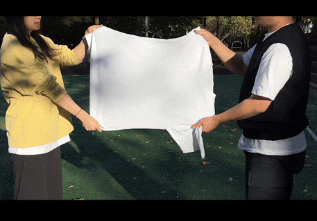 앞쪽 면을 뒤에서 당겨주고