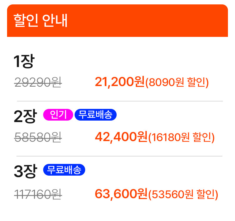 '색상 및 사이즈' 옵션에서 장수에 맞게 선택하여